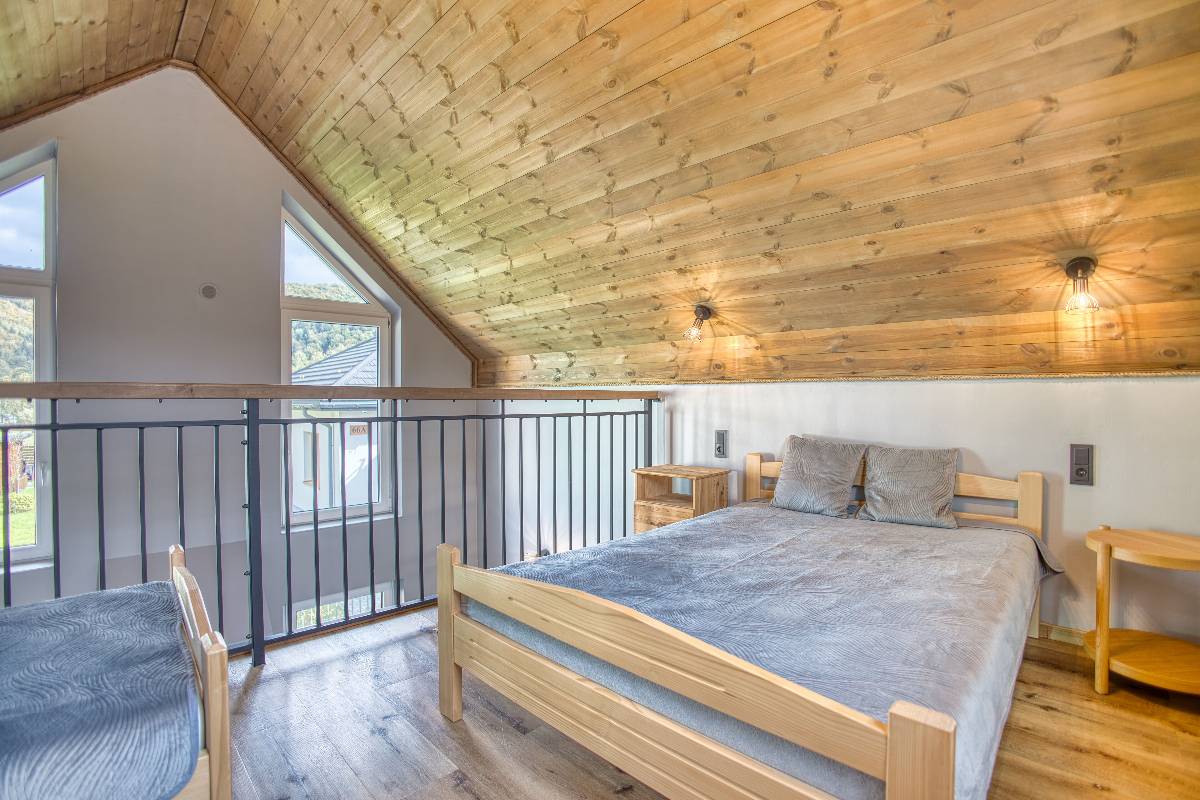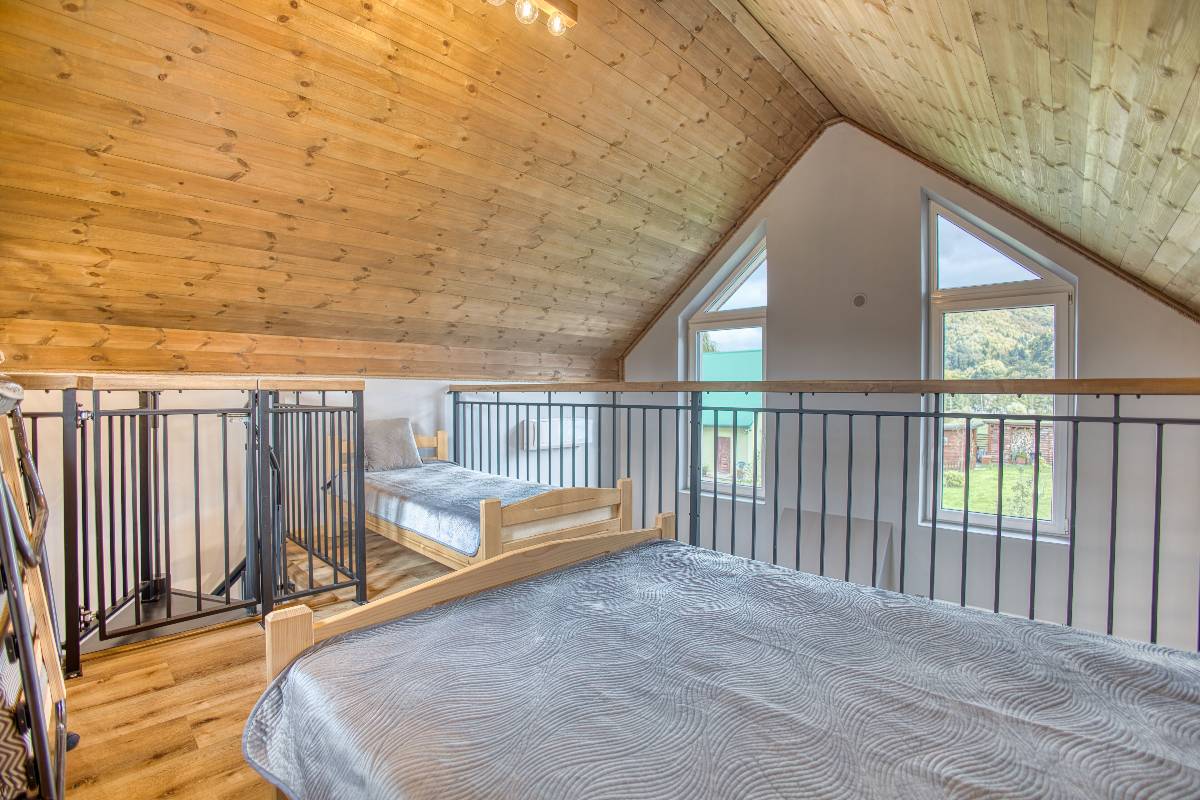 - Antresola to miejsce pełne uroku, z dwoma 1-osobowymi łóżkami oraz jednym 2-osobowym.