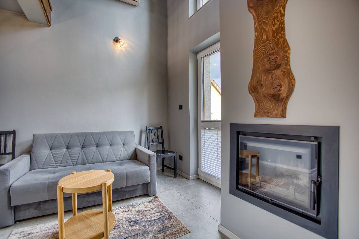 Wnętrza z Kominkiem i Antresolą: